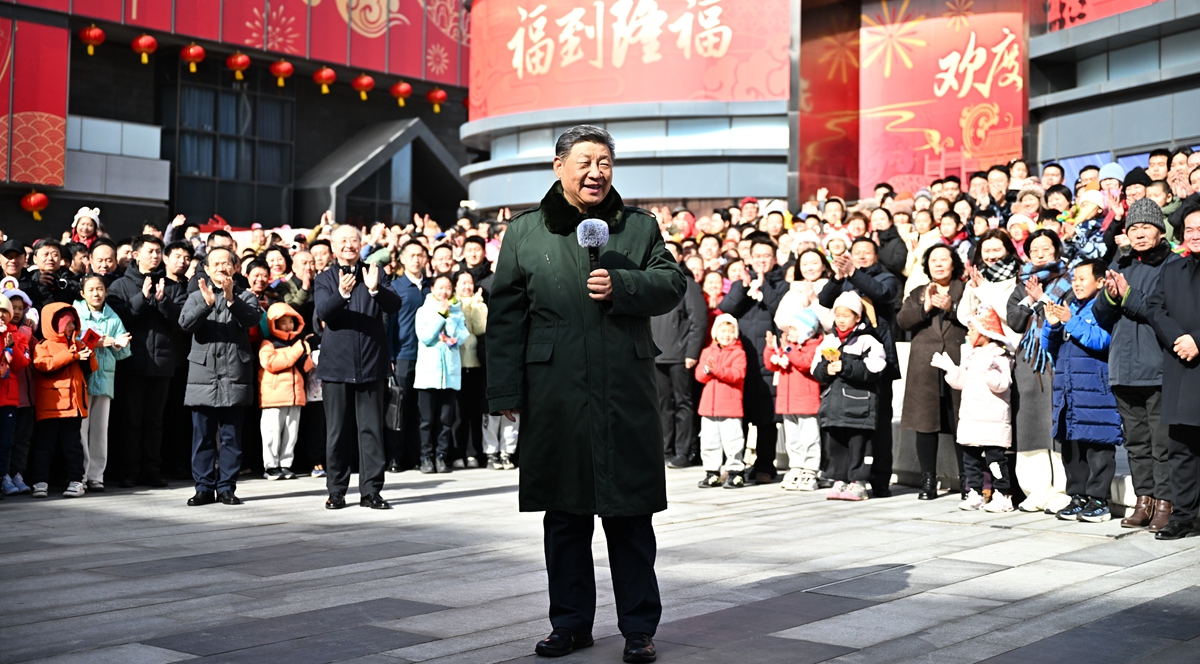وفي حوالي الساعة 10:00 صباحا، دخل شي وغيره من قادة الحزب والدولة القاعة على أنغام موسيقى مبهجة. ورحبوا بحرارة بالحاضرين وتبادلوا معهم التهاني والتمنيات بمناسبة عيد الربيع، وسط تصفيق حار عم المكان.