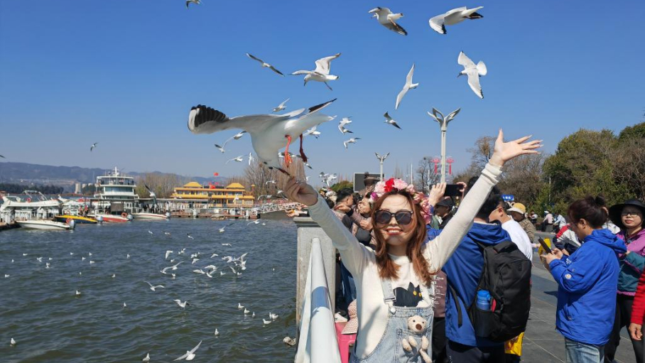 طيور النورس أحمر المنقار في جنوب غربي الصين