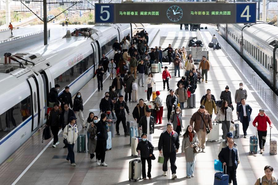 (وسائط متعددة) السكك الحديدية الصينية تشهد أعلى ذروة لرحلات العودة من عطلة عيد الربيع