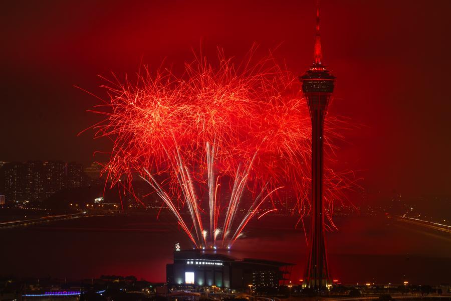 (وسائط متعددة) عروض الألعاب النارية والطائرات بدون طيار في ماكاو